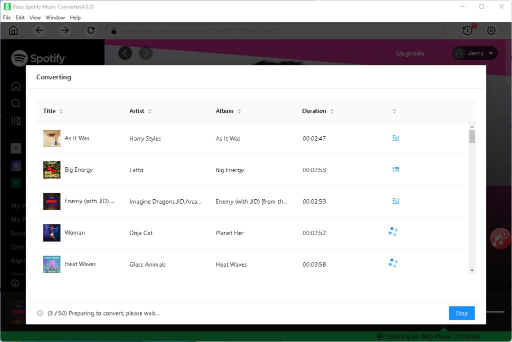 Con Pazu Spotify Converter, puedes explorar una amplia gama de música en Spotify y guardar tus canciones favoritas para escucharlas sin conexión, independientemente de tu estado de suscripción. La aplicación se integra perfectamente con Spotify we b player, por lo que es fácil de convertir canciones a formato MP3 sin Spotify aplicación, manteniendo la excelente calidad de audio que Spotify offers.