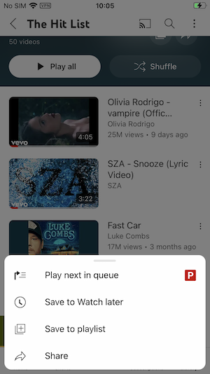 Con YouTube Premium(11,99 €/mes, 119,99 €/año), también obtienes YouTube Music Premium, que te permite descargar cualquier canción, álbum y lista de reproducción en dispositivos móviles. Nota: no ocurre lo mismo a la inversa – pagar por YouTube Music Premium($9.99/mes, $99.99/año) no te da acceso a YouTube Premium.