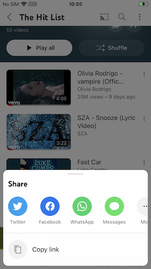 1. Abre un vídeo sin derechos de autor. Abre un vídeo sin derechos de autor, que quieras convertir a formato MP3, en la aplicación móvil de YouTube para iPhone. Toca el botón Compartir que aparece debajo o toca el icono de los tres puntos y elige Compartir.