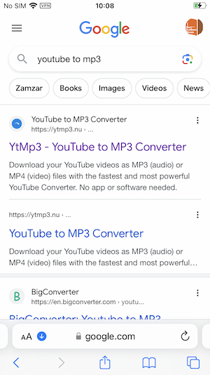 3. Abre google.com en un navegador y busca YouTube a mp3.
