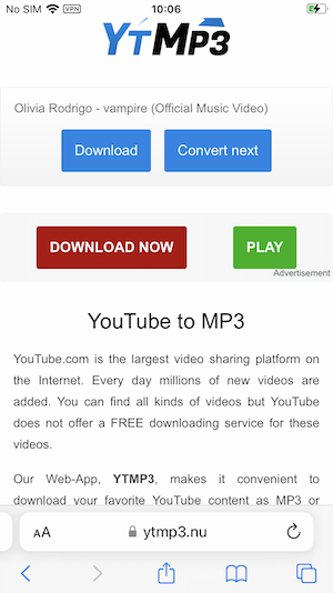Toca Descargar para guardar la canción en tu iPhone. Más tarde podrás encontrarla en la aplicación Archivos, donde podrás abrirla y reproducirla en tu reproductor multimedia predeterminado.