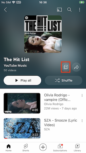 1.Busca la lista de reproducción/álbum que quieras descargar y toca el icono de abajo para añadirla a la biblioteca.