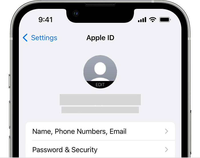 Si utilizas varios ID de Apple, el primer paso es asegurarte de que el ID de Apple de tu dispositivo es el que está asociado a la suscripción de Apple Music y el mismo ID que se utiliza con Compartir en familia. Para comprobar el ID de Apple asociado a tu dispositivo, ve a Configuración y toca sobre tu nombre para ver los detalles de la cuenta.
