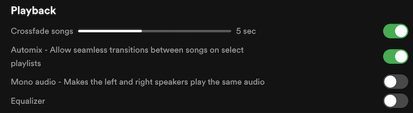 La función Crossfade en Apple Music no está disponible en iPhones, aunque sí en Mac/PC y dispositivos Android. La función crossfade de Spotify está disponible en todos los dispositivos. Crossfade es una función muy útil que permite una transición fluida entre canciones, eliminando cualquier silencio o interrupción brusca entre canciones.