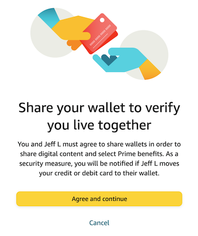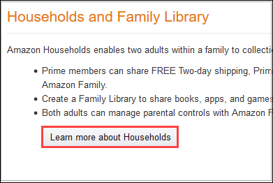 7. El segundo propietario de la cuenta es el que va a compartir el crédito y la contraseña. Selecciona Estamos de acuerdo en compartir las tarjetas de crédito y débito asociadas a nuestras cuentas de Amazon para compartir determinados beneficios Prime, así como juegos, aplicaciones, libros electrónicos y audiolibros; seguido de Crear hogar.