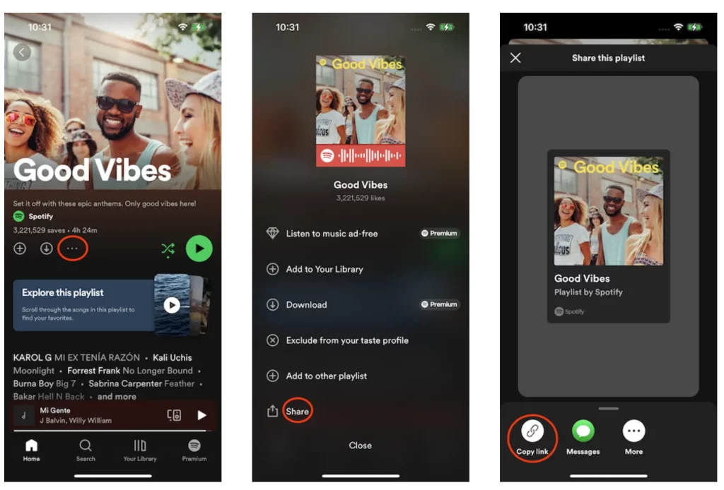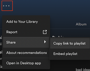Abre una lista de reproducción o un álbum, toca el icono … – Compartir – Copiar enlace.
