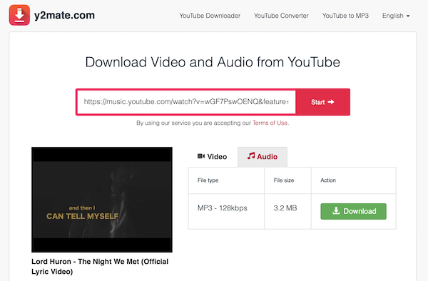 Y2mate también posee la capacidad de exportar audio de YouTube Music y descargarlo en formato MP3. Esto lo convierte en una excelente herramienta para los amantes de la música que quieren escuchar a sus artistas favoritos sin conexión en cualquier lugar y en cualquier momento. Todo lo que tienes que hacer es copiar la URL de la canción de YouTube Music que deseas descargar y pegarla en Y2mate.com. El inconveniente es que sólo descarga canciones MP3 en 128kbps.