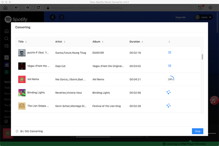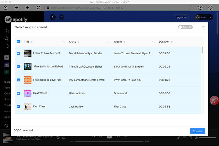 Spotify Converter detectará y mostrará todas las canciones. Desmarque las canciones que no desee descargar, si las hay.