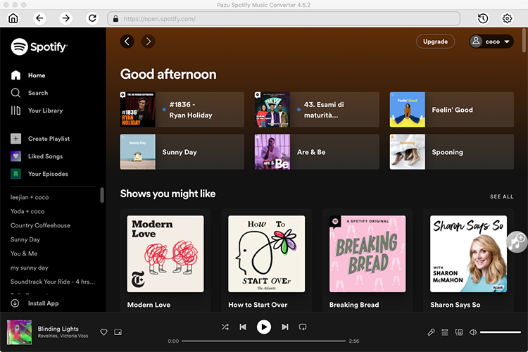 Descarga, instala y ejecuta Pazu Spotify Converter en tu Mac o Windows. Inicie sesión en su cuenta de Spotify con el reproductor web integrado.