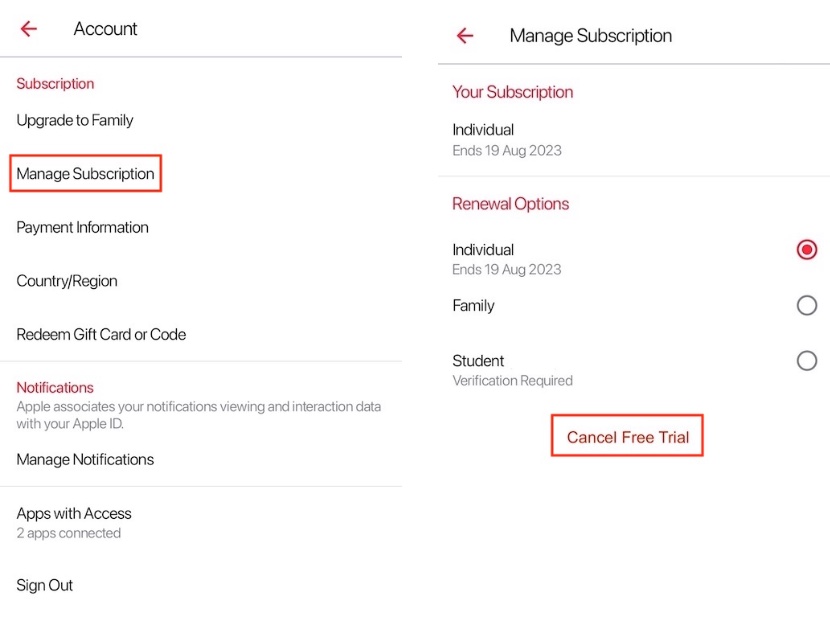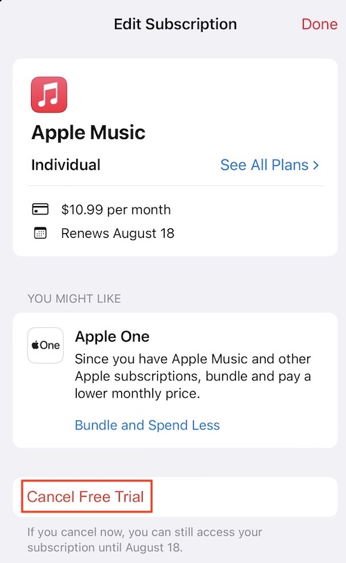 Sin embargo, si decide no continuar con su suscripción de Apple Music, pero se olvida de cancelarla antes de que finalice el período de prueba, se le facturará al final de la prueba. El importe varía en función del plan específico que estuvieras probando, ya sea Individual, Estudiante, Familiar o Voz. Para evitarlo, sigue nuestra guía sobre cómo cancelar tu suscripción a Apple Music en tu dispositivo iOS o Android antes de que expire la prueba gratuita.