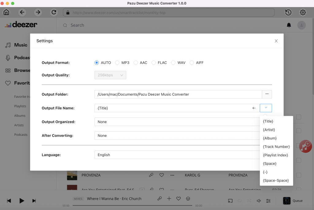 El formato de salida por defecto es M4A sin pérdidas. Pazu Deezer Music Converter también soporta la conversión de Amazon Music a MP3, AAC, FLAC, WAV y AIFF.