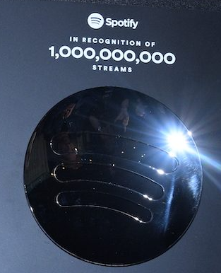 Spotify utiliza placas para reconocer a los artistas de música que han alcanzado más de mil millones de flujos en su plataforma. Muchos artistas que reciben la placa de mil millones de streams de Spotify incluso han hecho vídeos de sí mismos comiendo de la placa debido a su gran similitud con un plato de comida. Este acto desenfadado se ha convertido en una tradición para celebrar y compartir en las redes sociales.