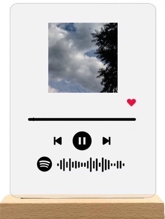Todo el mundo tiene una canción especial que tiene un significado en su vida, y una placa de Spotify te permite mostrar esa canción y crear un recuerdo único. Añade tu foto a la placa junto al código de Spotify de la canción elegida. Al escanear el código con la aplicación Spotify de tu teléfono, ¡se reproducirá la canción! Este elemento interactivo añade una capa extra de diversión y nostalgia a la placa de Spotify.