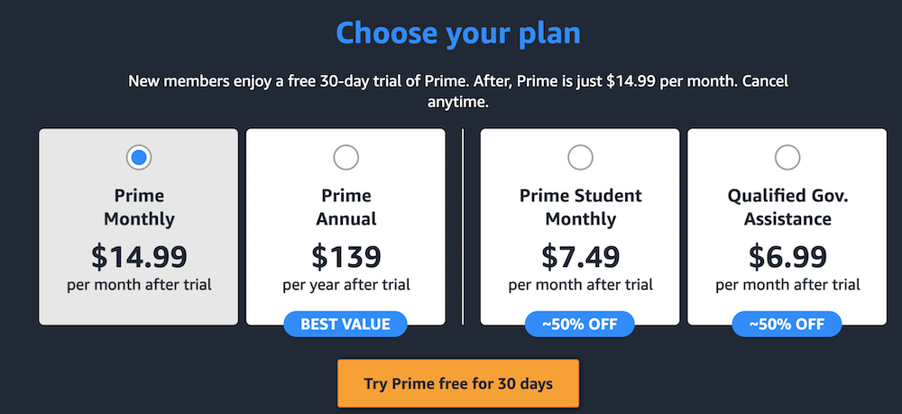 Visita amazon.com/amazonprime y comprueba cuánto cuesta Amazon Prime.
