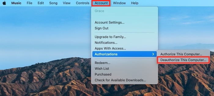 Puedes seguir pasos similares para desautorizar tu Mac con Apple Music: