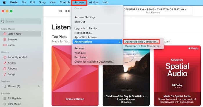 Es importante señalar que puede autorizar un máximo de cinco ordenadores a la vez para reproducir sus compras de iTunes Store. Por lo tanto, si ya tienes cinco dispositivos autorizados y deseas añadir un nuevo Mac o PC, tendrás que desautorizar uno de los existentes. Aquí tienes una guía paso a paso sobre cómo autorizar y desautorizar un ordenador Mac o Windows mediante Apple Music o iTunes.