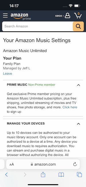 ¿Cómo salir del plan familiar de Amazon Music Unlimited en iPhone?