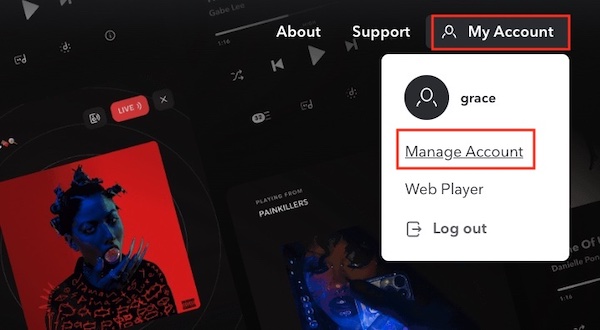 Paso 2. Pasa el ratón por Mi Cuenta en la esquina superior derecha y selecciona Administrar Cuenta.