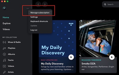 Si prefieres escuchar TIDAL en tu aplicación de escritorio, también puedes cancelar tu suscripción a través de ella. La aplicación de escritorio te redirigirá a la página web de TIDAL para completar el proceso de cancelación.