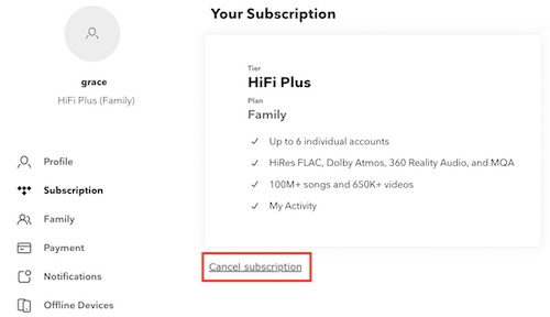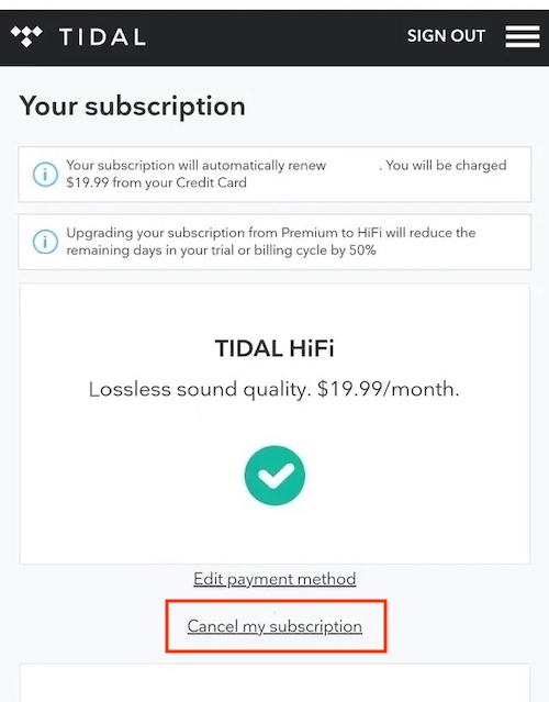 De forma similar a la aplicación de escritorio, también puedes cancelar tu suscripción a TIDAL a través de la aplicación para Android.
