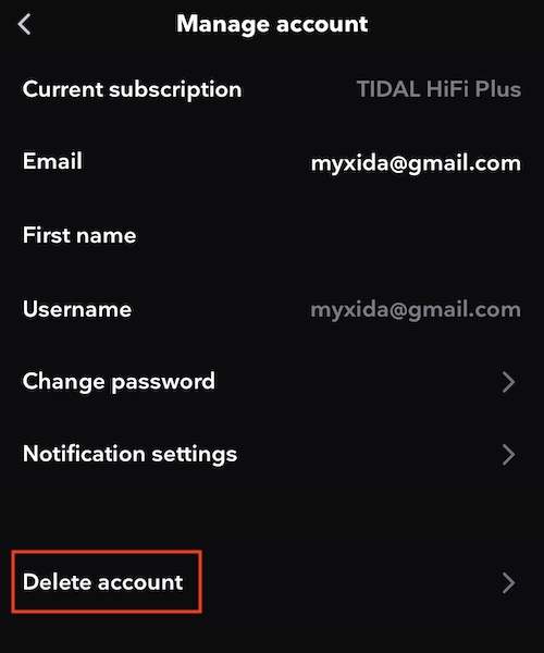 Para eliminar tu cuenta de TIDAL: