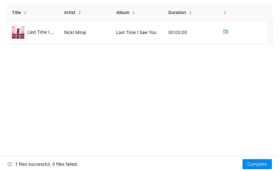 Una vez realizada la conversión, puedes encontrar tus canciones de Spotify descargadas como archivos locales haciendo clic en el botón Carpeta o yendo directamente a la carpeta de salida que personalizaste en el paso anterior. A partir de ahí, puede copiar la música descargada a su unidad USB sin ningún tipo de molestia.