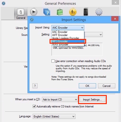 Paso 3. Importación de canciones. Establezca el uso de importación en MP3 Encoder