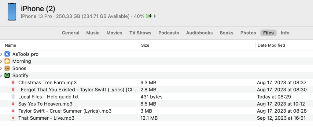 Sin embargo, los Archivos Locales no se sincronizarán con la aplicación de Spotify para iPhone automáticamente (aunque solía ser así). Para escuchar los Archivos Locales en tu iPhone, tienes que añadir las canciones a otra lista de reproducción y activar Archivos Locales en Spotify para iPhone.