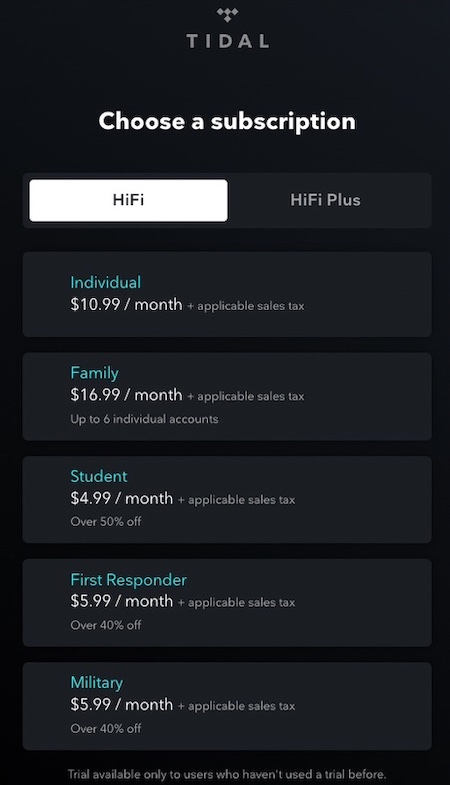 La siguiente tabla muestra una imagen completa de los tipos de suscripción Tidal y precios. El descuento de estudiante es sin duda la mejor oferta entre todos los planes de Tidal.