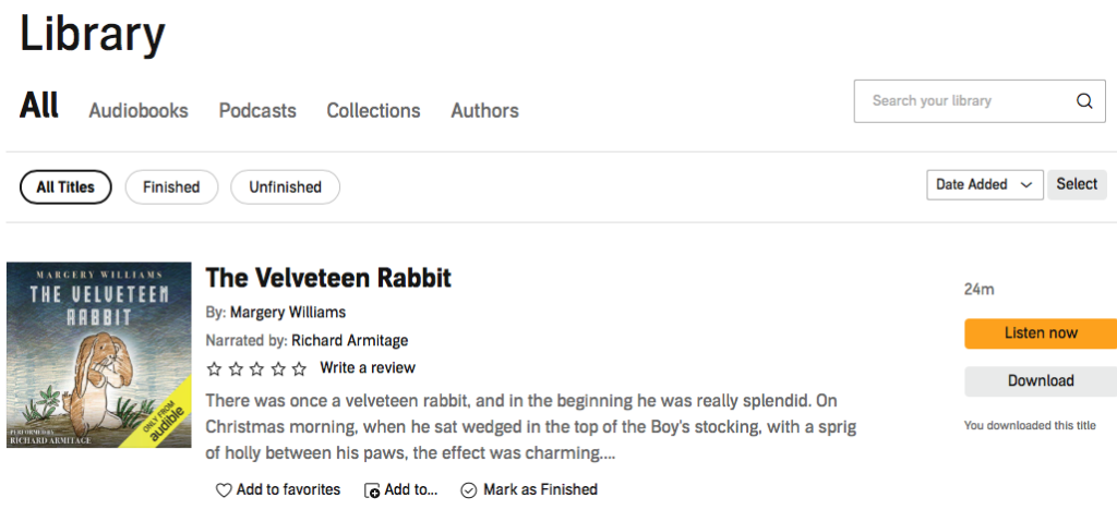 Audible no es gratis, pero ofrece una amplia selección de audiolibros y series de podcasts totalmente gratis. Aunque no estés suscrito a Audible Plus o Audible Premium Plus, también puedes escuchar en streaming o descargar estos títulos gratuitos. Todo lo que necesitas es una cuenta de Audible.
