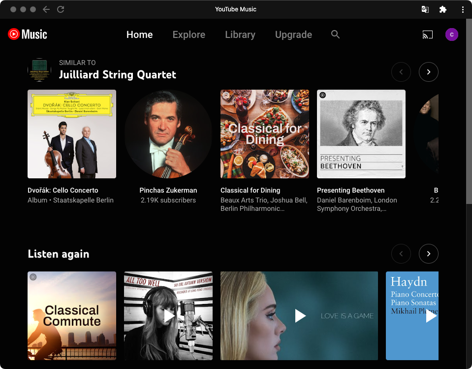 Aquí tienes un reproductor de escritorio gratuito y multiplataforma para YouTube Music de https://ytmdesktop.app. Descárgalo e instálalo en tu ordenador y podrás disfrutar de la música de YouTube: