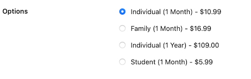 Apple Music ofrece 4 planes: Voz 4,99 $/mes, Estudiante 5,99 $/mes, Individual 10,99 $/mes(109 $/año) y Familiar 16,99 $/mes. Si hay más de 2 personas en su familia que utilizan Apple Music, entonces el plan familiar es una elección perfecta.