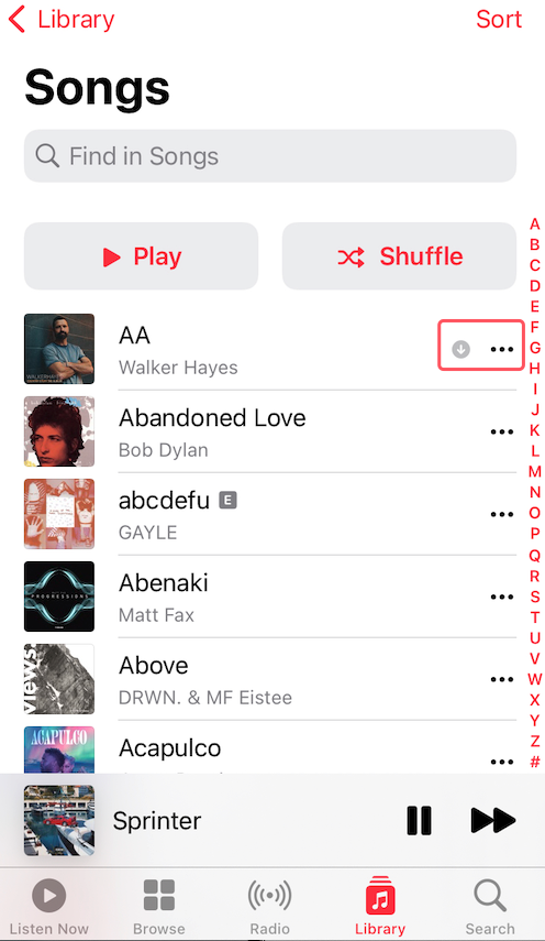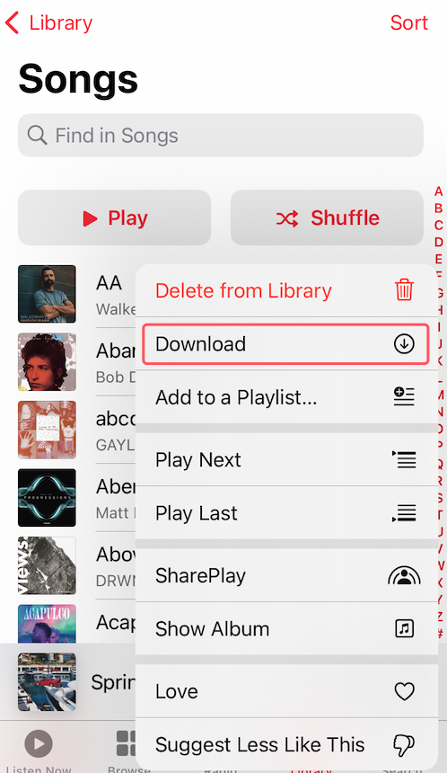 Después de añadir la canción, álbum o lista de reproducción de Apple Music a tu biblioteca, puedes descargarla para escucharla sin conexión.