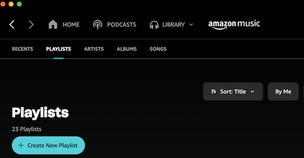 1. Abre la lista de reproducción de Amazon Music. Abre la aplicación de escritorio de Amazon Music o el reproductor web y haz clic en BIBLIOTECA – Música – LISTAS DE REPRODUCCIÓN.
