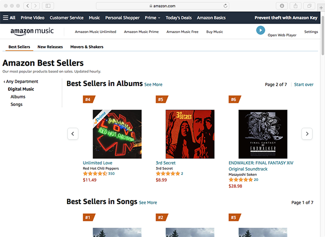 Abre Amazon Music Store. En Amazon.com puedes encontrar millones de canciones de tus artistas favoritos. La mayoría de las canciones cuestan entre 0,89 y 0,99 dólares y la mayoría de los álbumes entre 5,99 y 9,99 dólares. Lo mejor de todo es que todas las canciones de Amazon MP3 están libres de DRM y codificadas en formato MP3 de 256 kbps de alta calidad. Esto significa que se pueden reproducir en cualquier reproductor MP3, por lo que no tienes que preocuparte por la compatibilidad de formatos de archivo o la caducidad de la licencia.