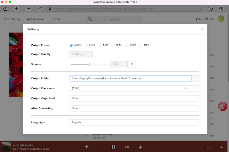 Pazu Pandora Music Converter es un potente descargador de MP3 para descargar música MP3 de Pandora en alta calidad de hasta 320kbps con etiquetas ID3 (título, artista y álbum). Pazu Pandora Music Converter es el descargador de Pandora a MP3 más popular. Pazu Pandora Music Converter es una herramienta ideal para convertir y descargar canciones, álbumes, listas de reproducción y podcasts de Pandora a MP3 en Mac y Windows. Esta aplicación de descarga de Mp3 es la mejor opción para descargar música mp3 de Pandora en unos pocos clics y sin esfuerzo. La sencilla funcionalidad de Pazu Pandora Music Converter hace que sea fácil de usar para que todo el mundo pueda buscar y descargar archivos de audio de Pandora de alta calidad.