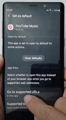 2. Pulsa Aplicaciones – YouTube Música – Establecer como predeterminado.