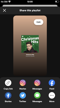En la aplicación móvil de Spotify también puedes compartir listas de reproducción en Facebook, Twitter, Instagram, etc.