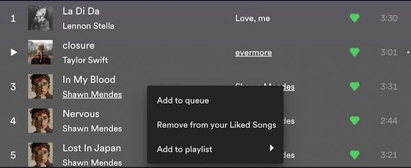 Muchos usuarios quieren compartir sus “canciones favoritas” con amigos y familiares. Por desgracia, Spotify no tiene una función integrada para compartir directamente las canciones que te gustan. Para compartir tus canciones favoritas, primero debes ponerlas en una nueva lista de reproducción.