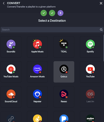 4. Elige Spotify como destino e inicia sesión en tu cuenta de Spotify. Confirma la transferencia y espera a que se complete el proceso. El tiempo que tarde dependerá del número de canciones y listas de reproducción que estés transfiriendo.
