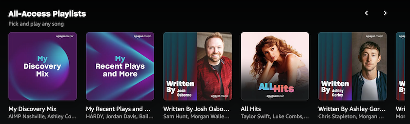 Los usuarios de Amazon Music Prime solo pueden elegir y reproducir canciones a la carta sin límite de saltos dentro de las listas de reproducción de acceso total. Puedes encontrar las listas de reproducción All-Access en la página de inicio de la aplicación Amazon Music o en el reproductor web.