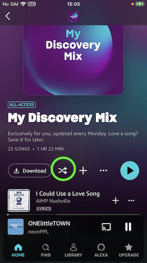 No hay forma de desactivar la reproducción aleatoria en Amazon Music Prime excepto actualizando a Amazon Music Unlimited o descargando las canciones/álbumes/listas de reproducción de Amazon Music a MP3 y reproduciéndolas con otro reproductor de música.