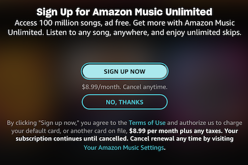 Si quieres más música sin conexión, suscríbete a Amazon Music Unlimited y desbloquea millones de canciones más.