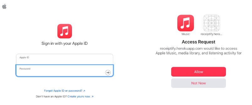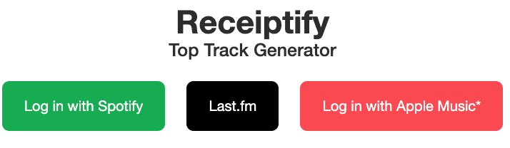 Cuando se trata de Apple Music, Receiptify sigue un enfoque distinto debido a las limitaciones de la API de Apple Music. Mientras que otras plataformas proporcionan datos más completos, la API de Apple Music sólo ofrece una lista de “Heavy Rotation”. Sin embargo, mediante la conexión de su cuenta de Apple Music a Receiptify, todavía puede generar recibos de Apple Music en sus canciones más reproducidas, álbumes, listas de reproducción, y más de un período de tiempo no especificado.