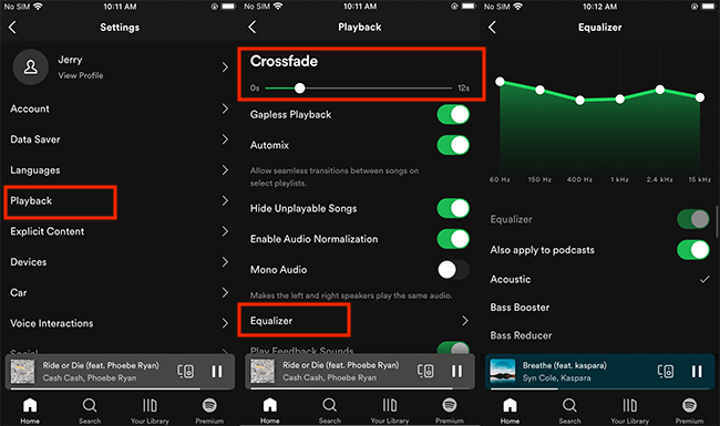 Puedes modificar el sonido de tu lista de reproducción para que se adapte al ambiente y la configuración de tu sala de DJ. Ve a Ajustes > Reproducción y verás la opción EQ. Antes de que empiece la fiesta, puedes experimentar con los ajustes del ecualizador. Puedes ajustar el ecualizador manualmente o elegir uno de los ajustes.