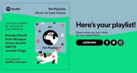 Con la lista de reproducción para mascotas, Spotify ofrece una experiencia única para ayudar a los dueños de mascotas a crear la lista de reproducción perfecta generada algorítmicamente para disfrutar con sus amigos voladores o de cuatro patas y fomentar un vínculo más profundo entre las mascotas y sus dueños.