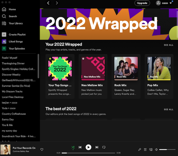 En la app de escritorio, busca 2022 Wrapped, aquí puedes encontrar “Tus mejores canciones 2022”, “Mejores canciones de 2022 USA”, “Mejores artistas de 2022 USA”, “Mejores grupos de 2022 USA”, “Mejores artistas de 2022”, etc. Toca el icono del corazón para guardar las listas de reproducción en tu biblioteca. Los usuarios Premium pueden descargar las listas de reproducción para reproducirlas sin conexión.