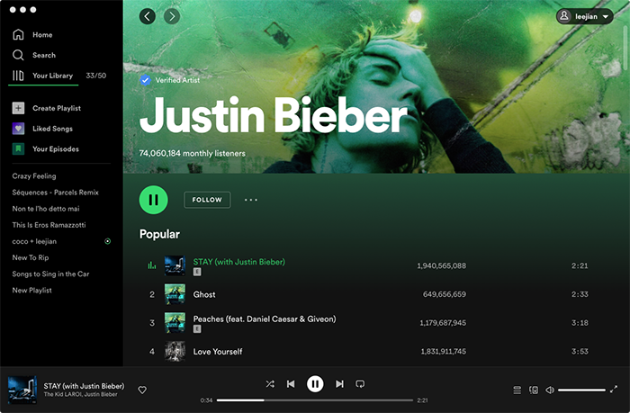 Spotify muestra cuántos oyentes tiene un artista concreto cada mes. Esto te ayuda a averiguar cuáles son los más populares entre los usuarios de Spotify. También puedes ver cuántos seguidores tiene una lista de reproducción, cuántas veces se reproduce una canción, lo que ayuda a decidir cuál probar.