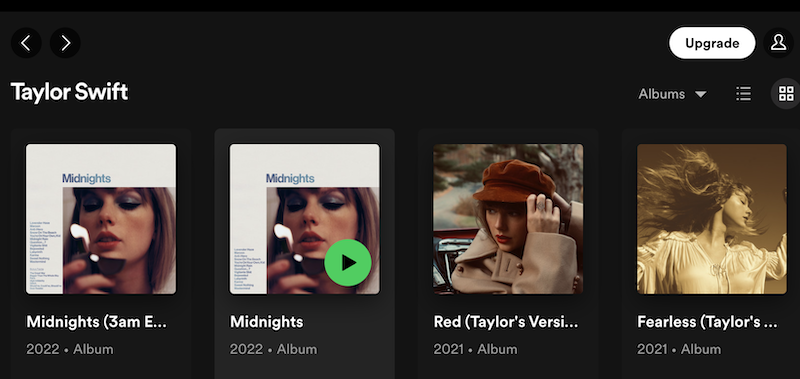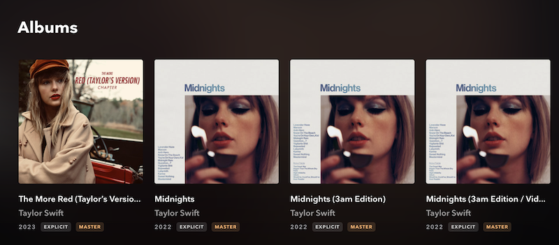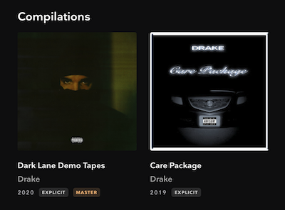 Tidal clasifica algunos álbumes como recopilatorios mientras que en Spotify están en la sección de álbumes.