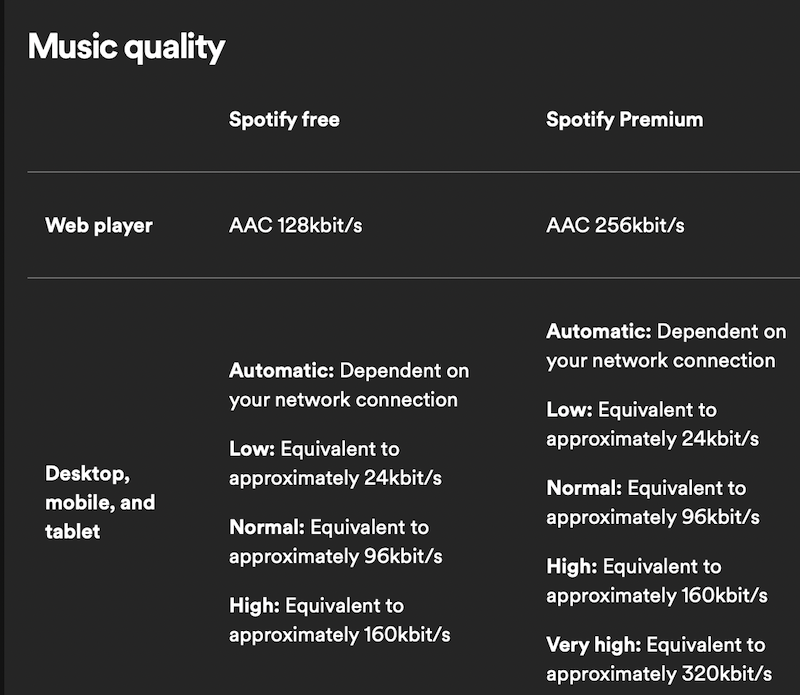 La calidad “muy alta” de Spotify se considera normalmente equivalente a 320kbps MP3. El plan HiFi de Tidal ofrece sonido al máximo rendimiento – con calidad HiFi de 1411 kbps.